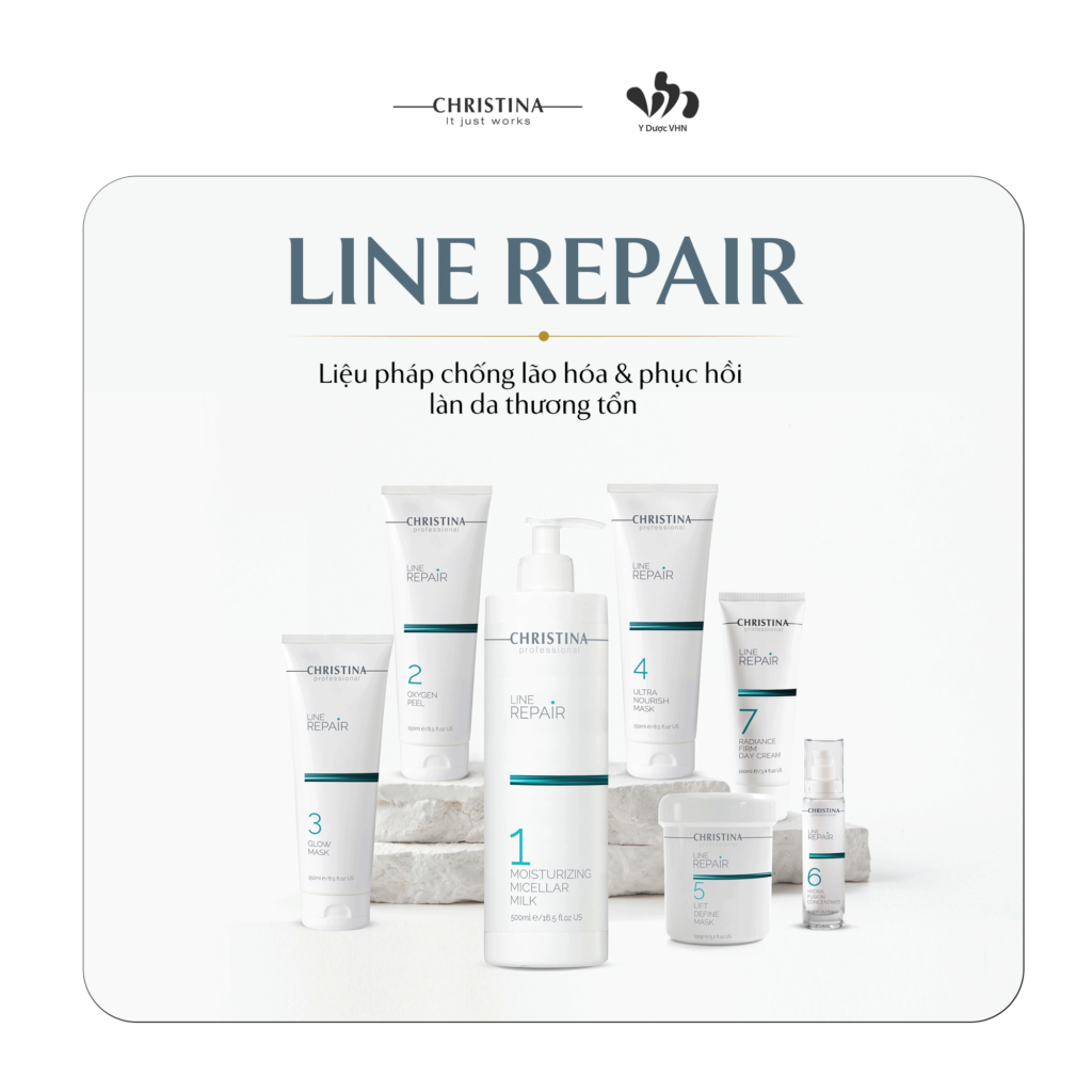 Với hợp chất tăng cường độ sáng bóng, tăng cường năng lượng cùng phức hợp cung cấp độ ẩm, dòng sản phẩm Line Repair giúp tăng cường oxy tới từng tế bào da, mang lại hiệu quả tức thì trên da, tăng cường độ ẩm, độ căng mịn và sáng bóng da, phù hợp với mọi đối tượng khách hàng.