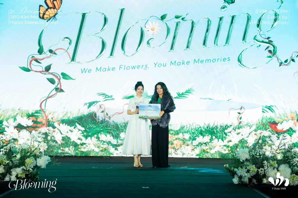 Chủ đề “Blooming – We Make Flowers, You Make Memories” không chỉ là một slogan mà còn là sự tường thuật về sự phát triển rực rỡ của ngành công nghiệp làm đẹp và thẩm mỹ tại thị trường Việt Nam. Từ chữ “BLOOMING,” chúng ta cảm nhận sự nở rộ của Y Dược VHN cùng các đối tác trong năm vừa qua, đồng thời thấy được sứ mệnh làm đẹp, hoàn thiện làn da của Việt Nam – nơi mà mỗi cá nhân sẽ nở rộ với sự hỗ trợ của các đối tác và công ty Y Dược VHN.