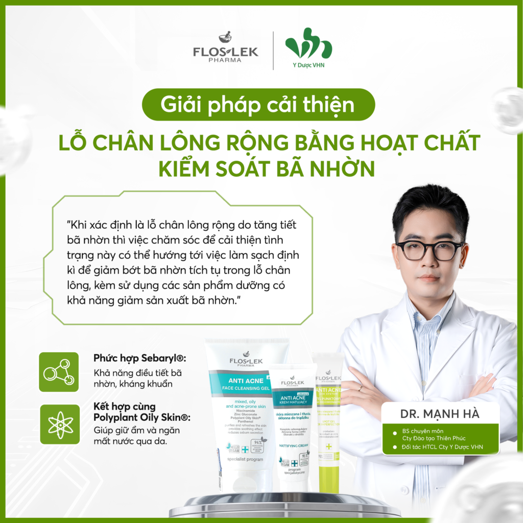 Theo bác sĩ da liễu Nguyễn Mạnh Hà – Bác sĩ đào tào Cty Đào tạo Thiên Phúc , khi đã xác định là lỗ chân lông rộng do tăng tiết bã nhờn thì việc chăm sóc để cải thiện tình trạng này có thể hướng tới việc làm sạch định kỳ để giảm bớt bã nhờn tích tụ trong lỗ chân lông, nhưng không nên sử dụng quá nhiều khiến da bị khô căng làm tăng phản ứng tiết bã nhờn, kèm sử dụng các sản phẩm dưỡng có khả năng giảm sản xuất bã nhờn.