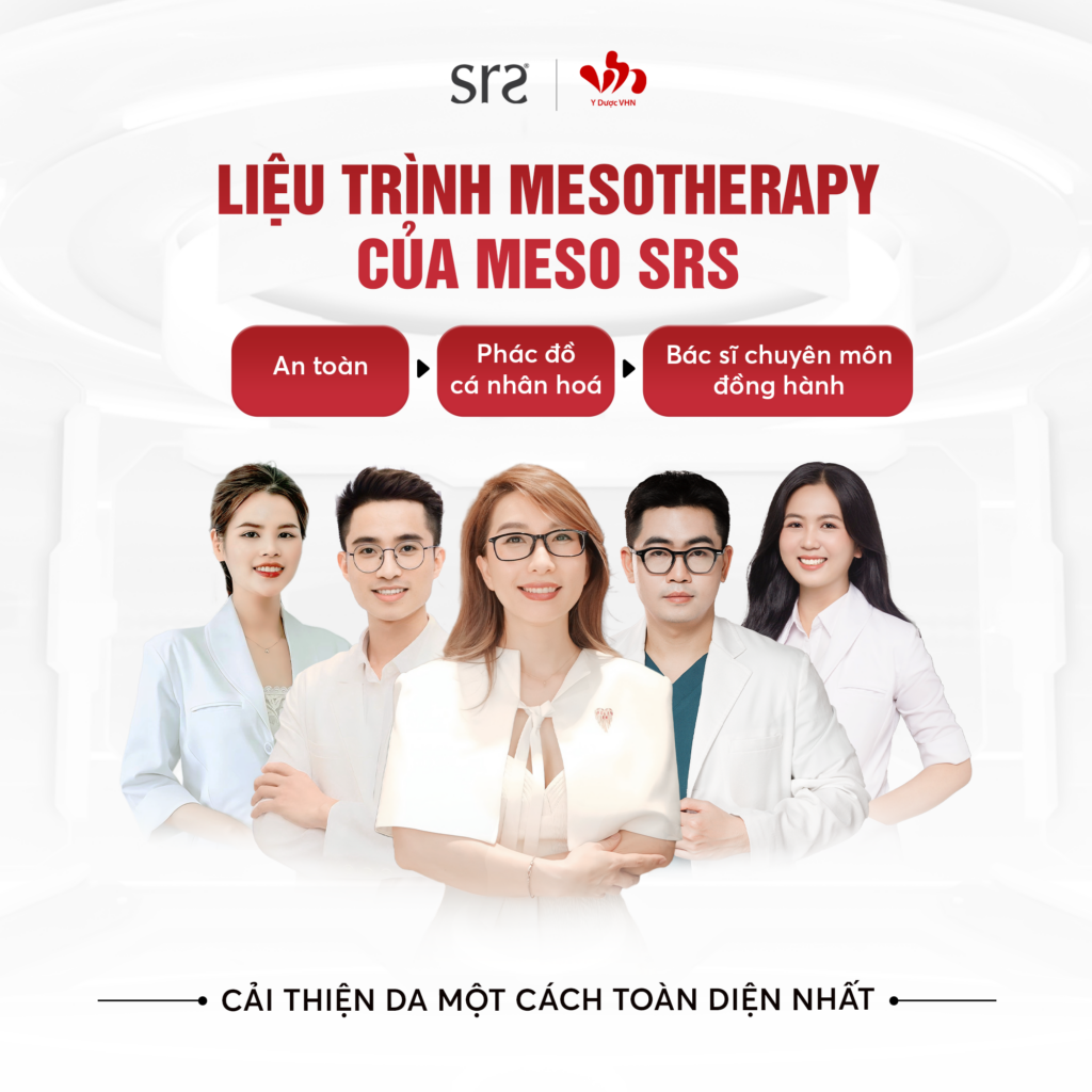 Nhãn hàng SRS Mesotherapy – Tiên phong trong việc nghiên cứu và phát triển các công nghệ ứng dụng liệu pháp mesotherapy. Thương hiệu này mang đến những phác đồ kết hợp các dòng sản phẩm đơn chất và cocktail, gồm các dòng sản phẩm điều trị cao cấp cho da mặt, cơ thể, da đầu và tóc – được phân phối độc quyền tại Việt Nam bởi Công ty Y Dược VHN, 100% sản phẩm đều có giấy tờ chứng nhận về nguồn gốc xuất xứ, giấy phép lưu hành toàn quốc do các cơ quan chức năng có thẩm quyền cấp phép.