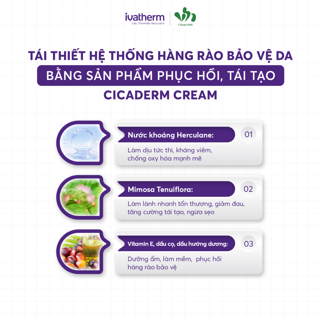 Tái thiết hệ thống hàng rào bảo vệ da bằng sản phẩm phục hồi, tái tạo Cicaderm Cream