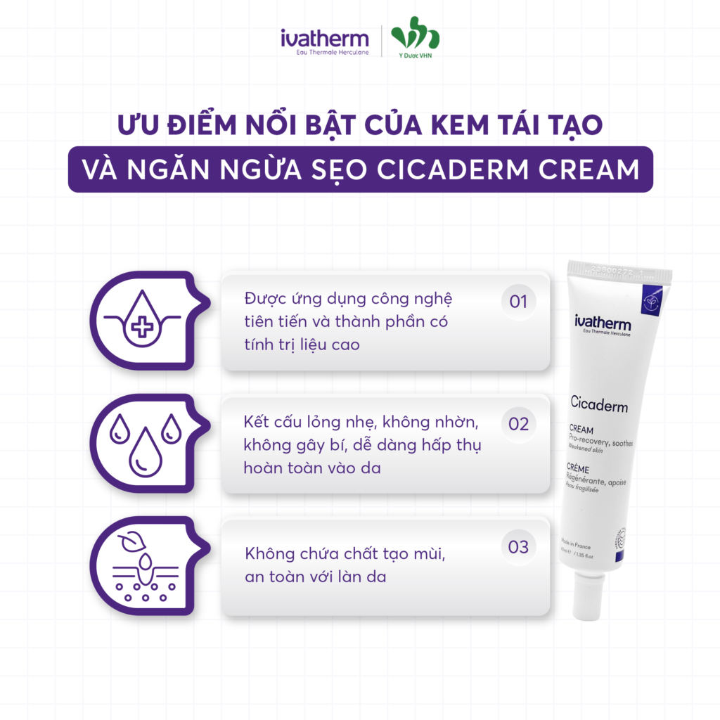 Ưu điểm nổi bật của kem tái tạo và ngăn ngừa sẹo Cicaderm Cream