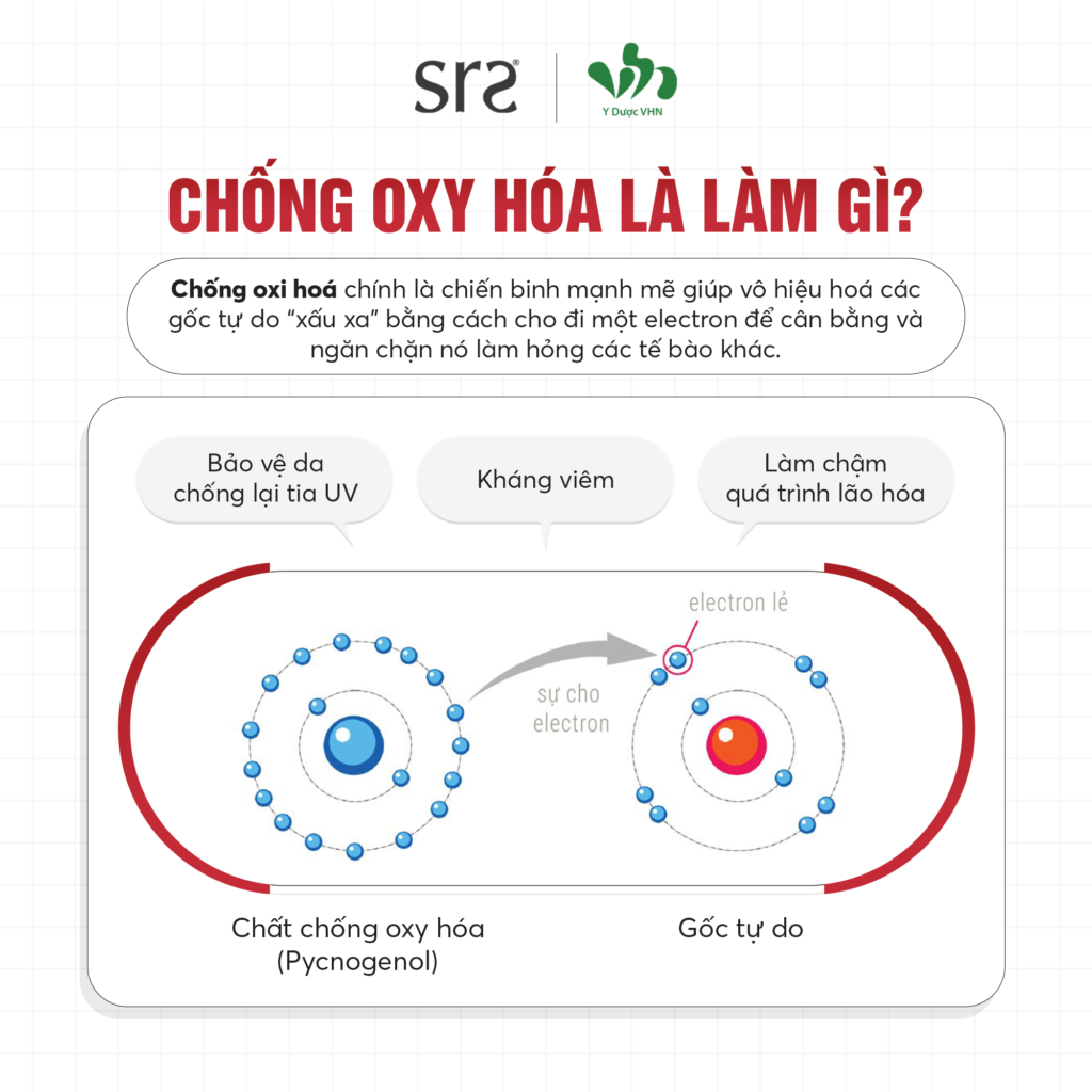 Để ngăn tình trạng này, các chất chống oxy hoá sẽ “tặng” cho gốc tự do electron còn dư của mình. Để gốc tự do không đi “cướp” electron từ các nguyên tử ổn định khác nữa.