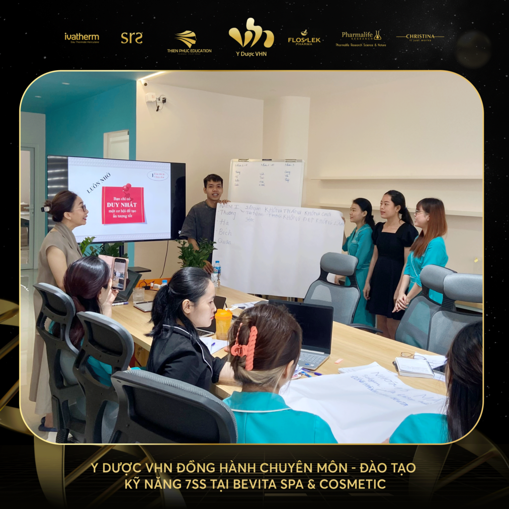 Trong buổi đào tạo này, Y Dược VHN đã chia sẻ các chiến lược và phương pháp tư vấn tối ưu dựa trên 7SS – hệ thống cung cấp dịch vụ đẳng cấp. Kiến thức về tâm lý khách hàng và cách tiếp cận chuyên nghiệp để hiểu rõ hơn về nhu cầu và mong muốn của khách hàng, từ đó mang đến dịch vụ hoàn hảo và sự hài lòng tối đa.