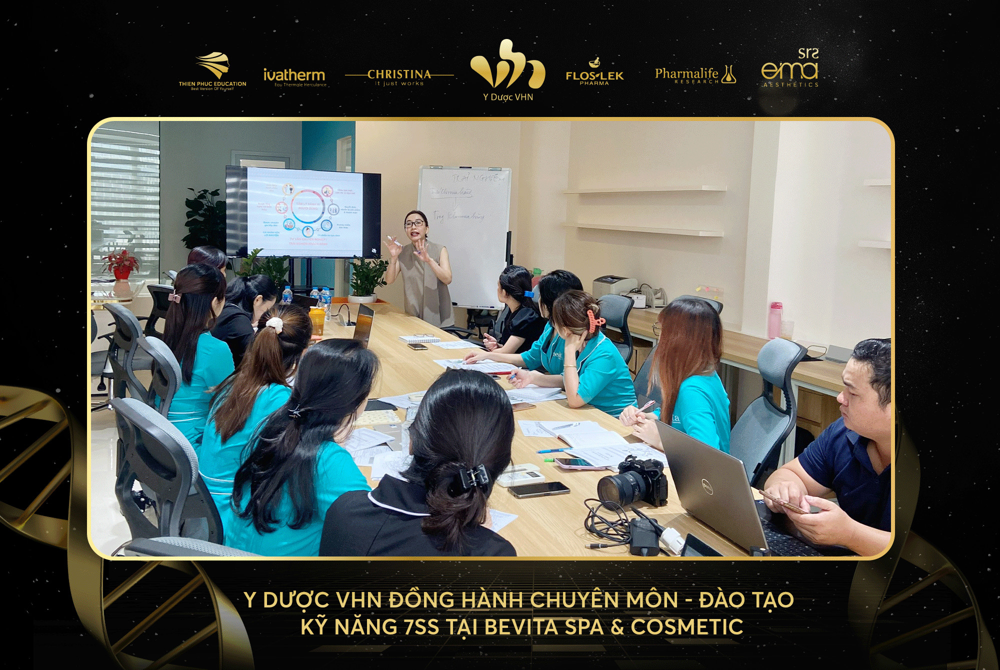 Trong buổi đào tạo này, Y Dược VHN đã chia sẻ các chiến lược và phương pháp tư vấn tối ưu dựa trên 7SS – hệ thống cung cấp dịch vụ đẳng cấp. Kiến thức về tâm lý khách hàng và cách tiếp cận chuyên nghiệp để hiểu rõ hơn về nhu cầu và mong muốn của khách hàng, từ đó mang đến dịch vụ hoàn hảo và sự hài lòng tối đa.